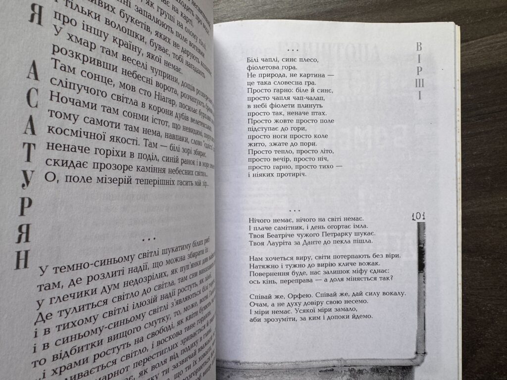 У 2006 році наважилася видати свою єдину книжку віршів. Туди не увійшло нічого з 90-х, воно було таке все бурхливе, а там досить благі вірші, якщо так можна сказати. Вона була інспірована поїздкою до Єрусалиму, на Святу землю і в мене було абсолютне відчуття, що мені потрібно її видати. Там вірші, які я писала, коли намагалася себе духовно шукати, але є різне, тобто збірка не є тематичною чи концептуальною.
