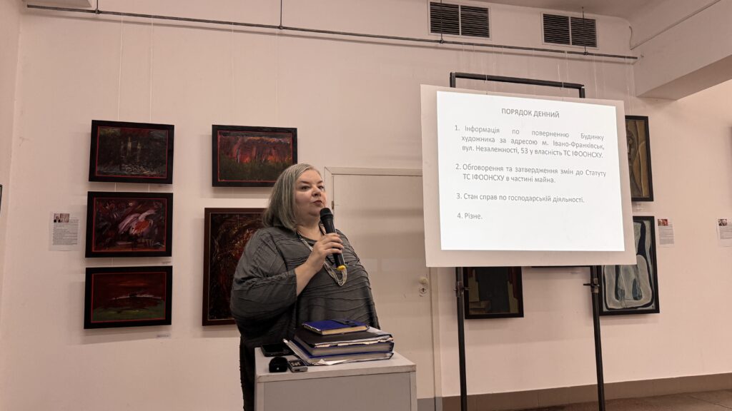 Потім Світлана Повшик розповіла історію Будинку художника. У 1965 році відбулося замовлення проєктної документації. У 1991 році будинок з балансу Худфонду УРСР передали на баланс Спілки. У 1992 році обрада прийняла рішення віднести будівлю до комунальної власності облради. У 1998 році вийшла постанова Кабміну № 1058 «Про передачу нерухомого майна творчим спілкам», що зобовʼязує за поданням творчих спілок передати у їхню власність нерухоме майно, яке станом на 24 серпня 1991 року перебувало у їхньому володінні. Будинок перейшов до Спілки. У 2001 році облрада прийняла рішення передати будинок у власність Спілки (без права відчуження).