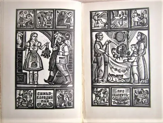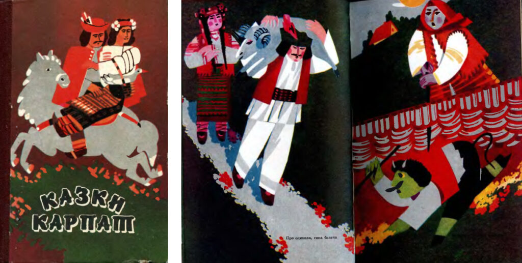 Палітурка та сторінки видання «Казки Карпат» з ілюстраціями Богдана Пікулицького. 1989 рік, видавництво «Карпати». Джерело: Читанка