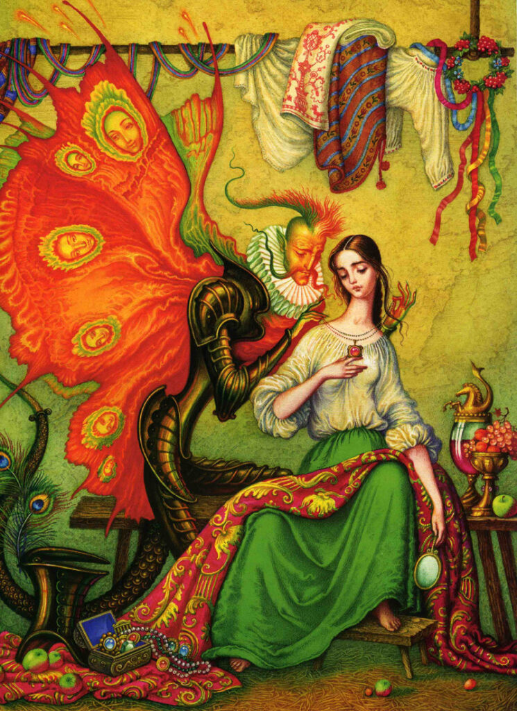 Звісно, чарівні казки не є винятково чоловікоцентричні; вони віддзеркалюють культи й міфи старих часів. Наприклад, про що нам каже казка про дідову доньку і бабину доньку, який Оксана Забужко перетворила в повість? Це ж насправді велике дерево сюжетів, де є, наприклад, мотиви сестровбивства і Попелюшки, а ще моя улюблена казка про Кобилячу Голову — схоже, відгомін архаїчного культу в честь одомашнення коня і відтак культу померлих предків. Кобиляча Голова нагадує, що незаміжня дівчина повинна бути слухняна, покірна і беручка до всієї домашньої праці. Знов-таки жіноча роль зводиться до патріархальної Попелюшки. Тобто чарівна казка передає з рук у руки, чи то пак із вуст в уста гендеровані стратегії успіху: герой досягає його в бою, силою, а героїня — послухом і, як би нині сказали, неоплачуваною обслуговувальною працею.