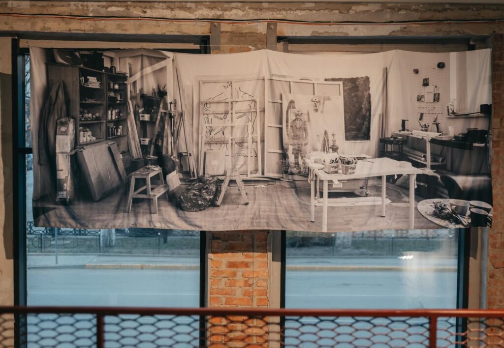 Привертає увагу і формат експонування роботи Сергія Греха «Пауза, майстерня». Хоча її місцезнаходження в загальному маршруті також викликає певні питання щодо логіки, саме фізичне втілення спрацювало чудово: фотографію порожньої робітні надрукували на текстилі й підвісили над сходами. Цей кінематографічний кадр, що фіксує вимушену зупинку практики мобілізованого художника, проглядається і з першого, і з другого поверхів, візуально поєднуючи їх в єдину оповідь.